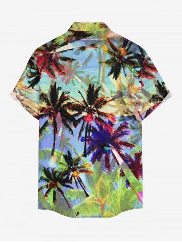 Short Sleeves Shirts > Plus Size Colorful Coconut Tree Print Buttons Pocket Hawaii Shirt For Men