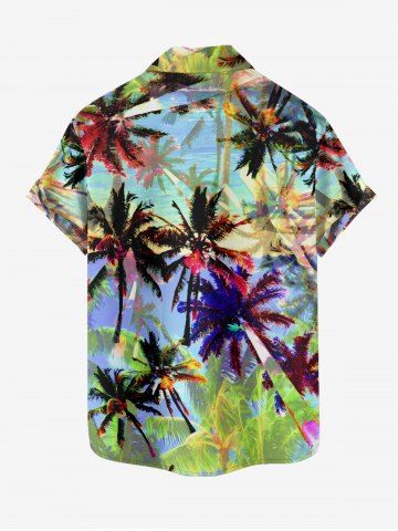 Short Sleeves Shirts > Plus Size Colorful Coconut Tree Print Buttons Pocket Hawaii Shirt For Men