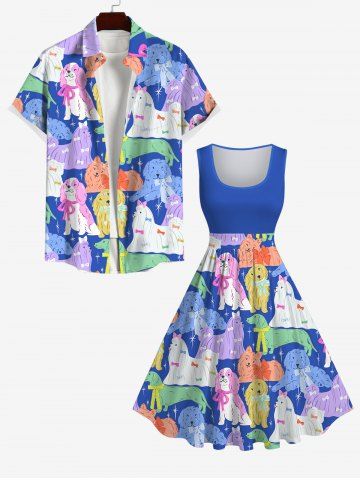 Short Sleeves Shirts > Plus Size Colorful Cute Fluffy Dog Stars Print Hawaii Button Pocket Shirt For Men