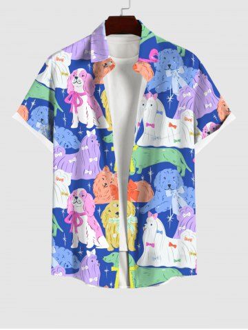 Plus Size Colorful Cute Fluffy Dog Stars Print Hawaii Button Pocket Shirt For Men - Multi-a - M