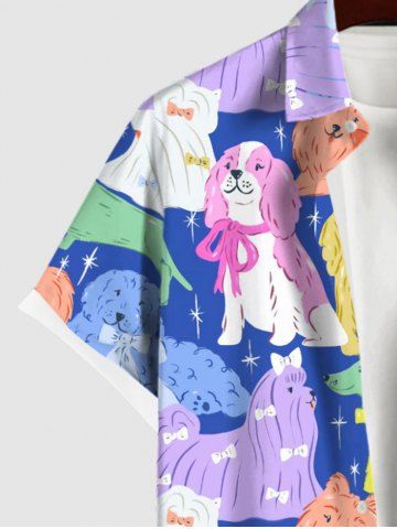 Plus Size Colorful Cute Fluffy Dog Stars Print Hawaii Button Pocket Shirt For Men - Multi-a - L