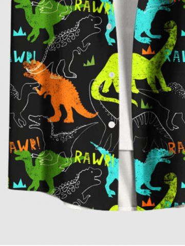 Plus Size Colorful Dinosaur Letters Print Hawaii Button Pocket Shirt For Men - Black - 2xl
