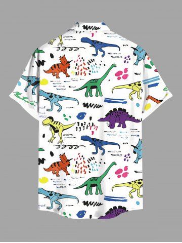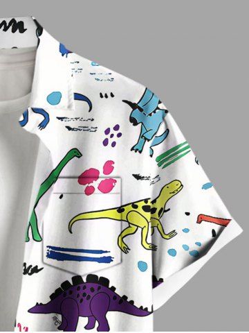 Plus Size Colorful Dinosaur Print Buttons Pocket Hawaii Shirt For Men - White - S