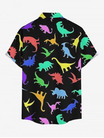 Plus Size Colorful Dinosaur Print Hawaii Button Pocket Shirt For Men - Black - 3xl