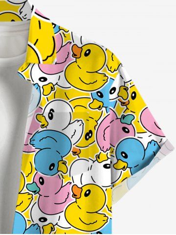 Plus Size Colorful Ducks Print Buttons Pocket Hawaii Shirt For Men - Yellow - Xl
