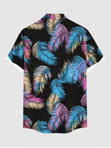Plus Size Colorful Feather Print Buttons Pocket Hawaii Shirt For Men - Black - 4xl