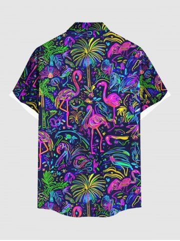 Plus Size Colorful Flamingo Coconut Tree Print Buttons Pocket Hawaii Shirt For Men - Multi - 3xl