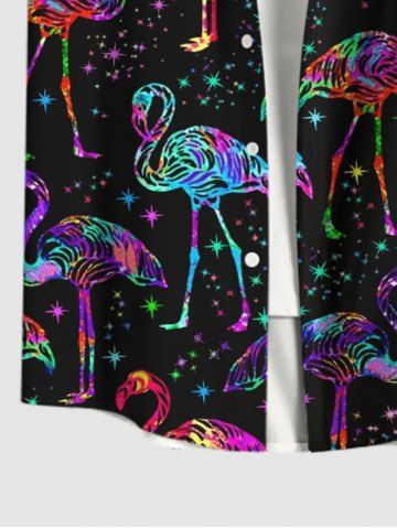 Plus Size Colorful Flamingo Galaxy Glitter 3D Print Buttons Pocket Hawaii Shirt For Men - Black - L