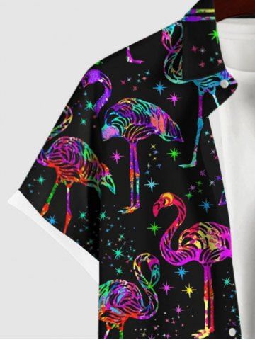 Plus Size Colorful Flamingo Galaxy Glitter 3D Print Buttons Pocket Hawaii Shirt For Men - Black - 3xl