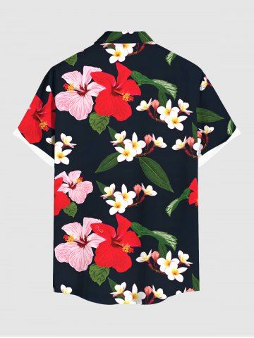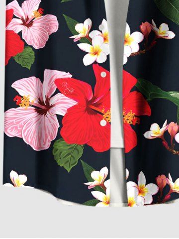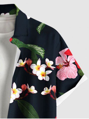 Plus Size Colorful Floral Leaves Print Hawaii Button Pocket Shirt For Men - Black - 6xl