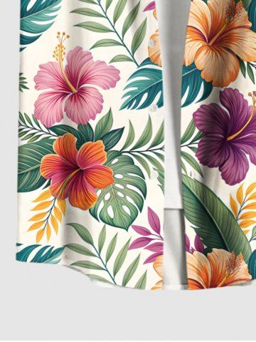 Plus Size Colorful Floral Tropical Leaves Print Hawaii Button Pocket Shirt For Men - Multi-a - Xl