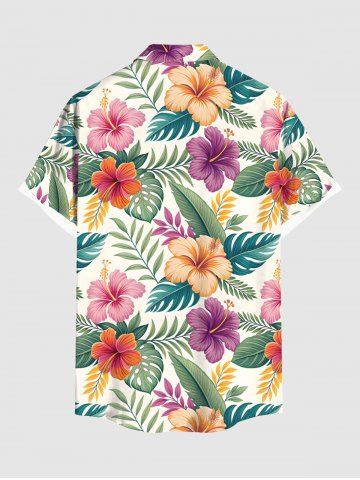 Short Sleeves Shirts > Plus Size Colorful Floral Tropical Leaves Print Hawaii Button Pocket Shirt For Men