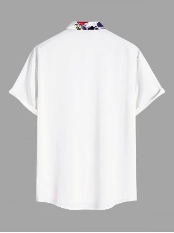 Plus Size Colorful Flower Skull Print Hawaii Button Pocket Shirt For Men - White - L