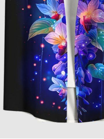 Plus Size Colorful Flowers Leaf Galaxy Glitter 3D Print Buttons Pocket Shirt For Men - Black - S