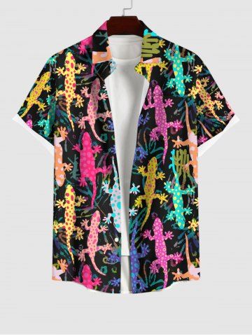 Plus Size Colorful Gecko Spotted Print Hawaii Ombre Button Pocket Shirt For Men - Black - S