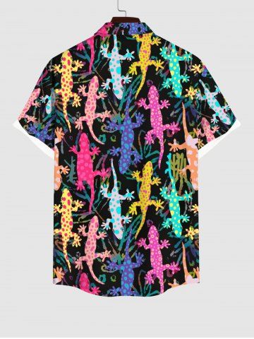 Plus Size Colorful Gecko Spotted Print Hawaii Ombre Button Pocket Shirt For Men - Black - 4xl