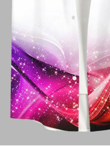 Plus Size Colorful Glitter Ombre Light Beam Print Button Pocket Shirt For Men - White - L