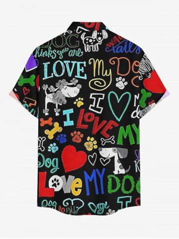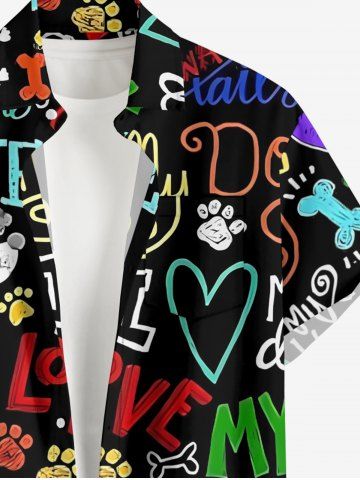 Plus Size Colorful Letters Dog Heart Paw Print Hawaii Button Pocket Shirt For Men - Black - 4xl
