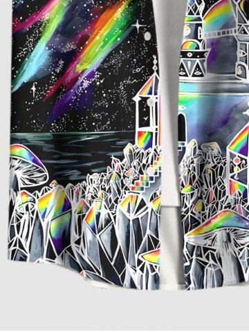 Short Sleeves Shirts > Plus Size Colorful Mushroom Castle Planet Butterfly Print Button Pocket Shirt For Men
