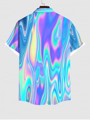 Plus Size Colorful Neon Light Beam 3D Print Buttons Pocket Hawaii Shirt For Men - Multi-a - 3xl