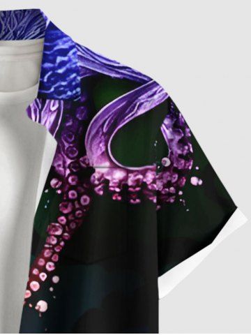 Plus Size Colorful Octopus Bubble Seabed Print Hawaii Button Pocket Shirt For Men - Black - Xl