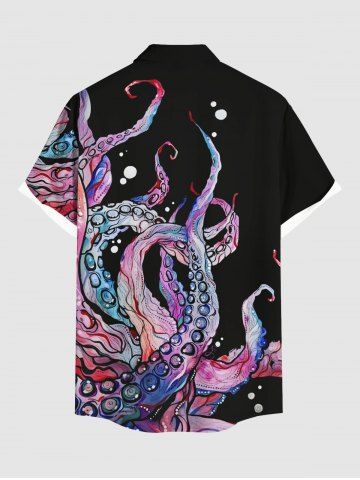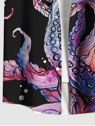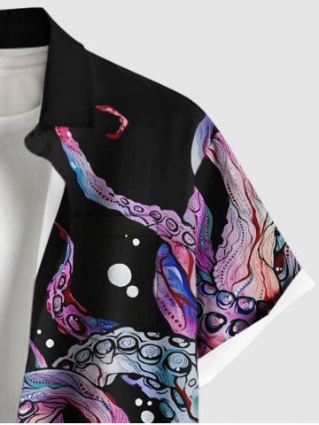 Plus Size Colorful Octopus Dots Print Buttons Pocket Hawaii Shirt For Men - Black - 6xl