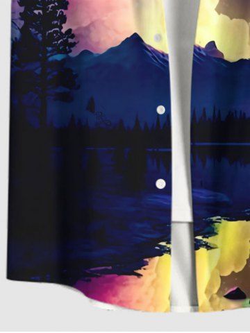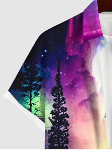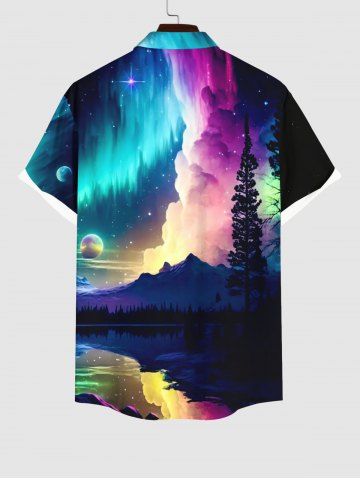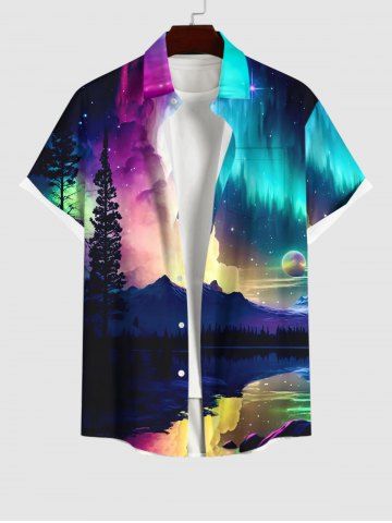 Plus Size Colorful Ombre Aurora Cloud Galaxy Tree Mountain Lake Print Hawaii Button Pocket Shirt For Men - Multi-a - 2xl