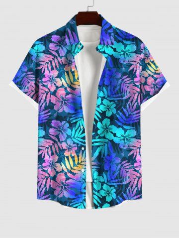 Short Sleeves Shirts > Plus Size Colorful Ombre Coconut Leaves Floral Print Hawaii Button Pocket Shirt For Men