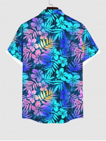 Short Sleeves Shirts > Plus Size Colorful Ombre Coconut Leaves Floral Print Hawaii Button Pocket Shirt For Men