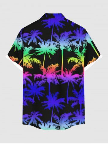 Short Sleeves Shirts > Plus Size Colorful Ombre Coconut Tree Print Hawaii Button Pocket Shirt For Men