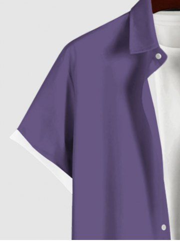 Plus Size Colorful Ombre Colorblock Sun Moon Print Button Pocket Shirt For Men - Purple - 4xl