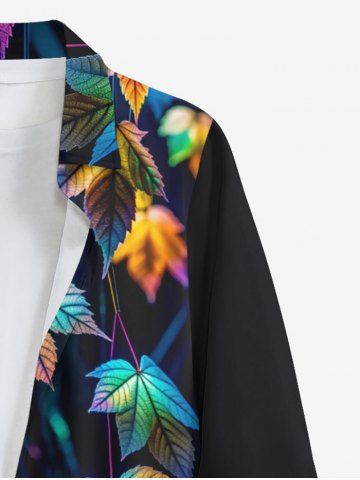 Plus Size Colorful Ombre Maple Leaves Print Hawaii Button Long Sleeves Shirt For Men - Black - 8xl