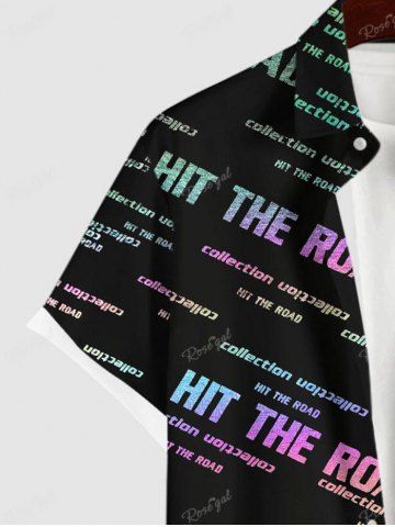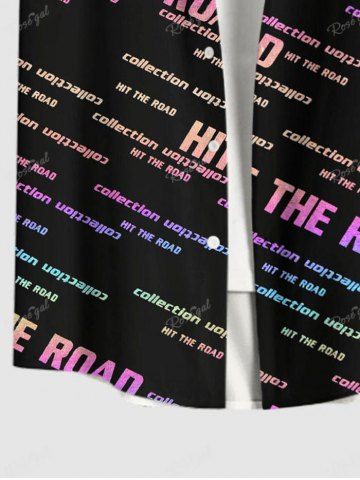 Plus Size Colorful Ombre Neon Letters Print Button Pocket Shirt For Men - Black - Xl