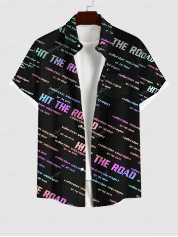 Plus Size Colorful Ombre Neon Letters Print Button Pocket Shirt For Men - Black - 3xl