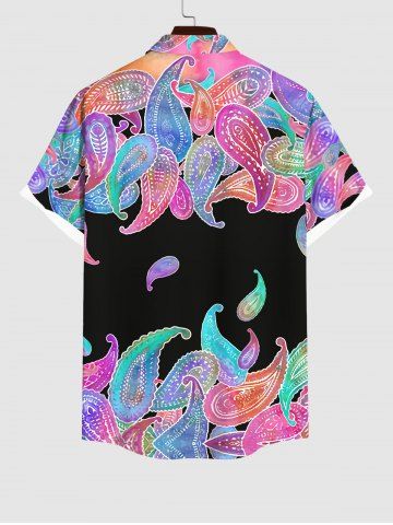 Short Sleeves Shirts > Plus Size Colorful Ombre Paisley Print Hawaii Button Pocket Shirt For Men