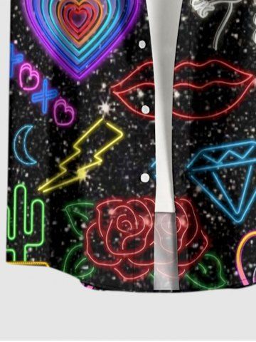 Short Sleeves Shirts > Plus Size Colorful Ombre Skulls Mushroom Print Hawaii Button Pocket Shirt For Men