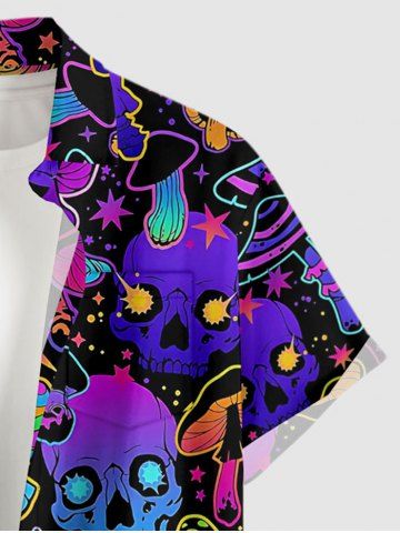 Plus Size Colorful Ombre Skulls Mushroom Print Hawaii Button Pocket Shirt For Men - Purple - Xl