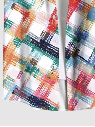 Plus Size Colorful Painting Geometric Plaid Print Hawaii Button Pocket Shirt For Men - Multi-a - M