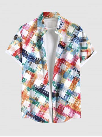 Short Sleeves Shirts > Plus Size Colorful Painting Geometric Plaid Print Hawaii Button Pocket Shirt For Men