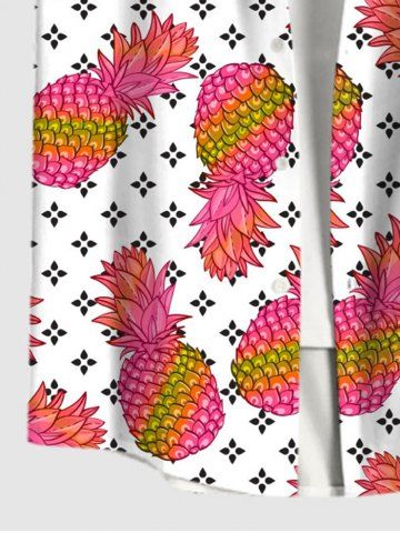 Plus Size Colorful Pineapple Floral Print Button Pocket Hawaii Shirt For Men - Multi-a - Xl
