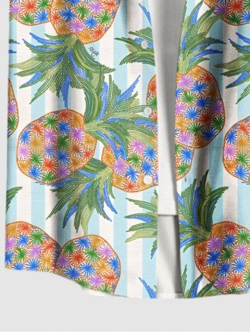 Short Sleeves Shirts > Plus Size Colorful Pineapple Striped Print Hawaii Button Pocket Shirt For Men