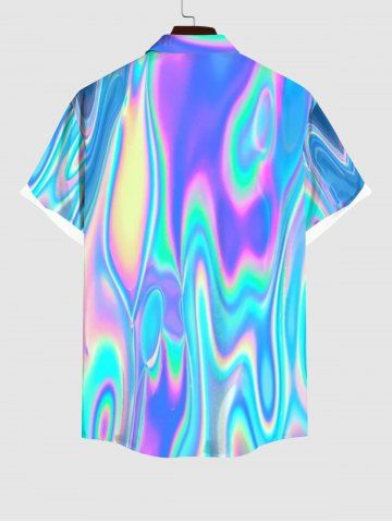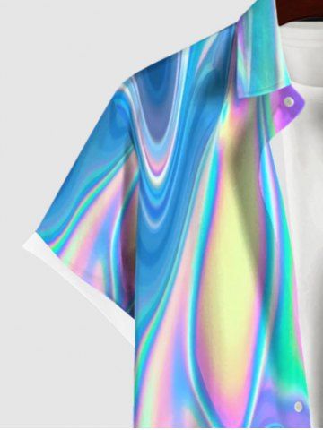 Plus Size Colorful Psychedelic Trippy Ripple Print Buttons Pocket Shirt For Men - Multi-a - Xl