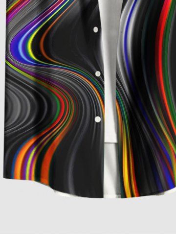 Plus Size Colorful Rainbow Light Beam Curve Print Buttons Pocket Hawaii Shirt For Men - Black - 2xl