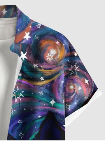 Short Sleeves Shirts > Plus Size Colorful Spiral Galaxy Star Print Hawaii Button Pocket Shirt For Men