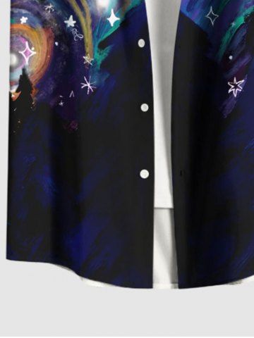 Plus Size Colorful Spiral Galaxy Star Print Hawaii Button Pocket Shirt For Men - Black - 6xl