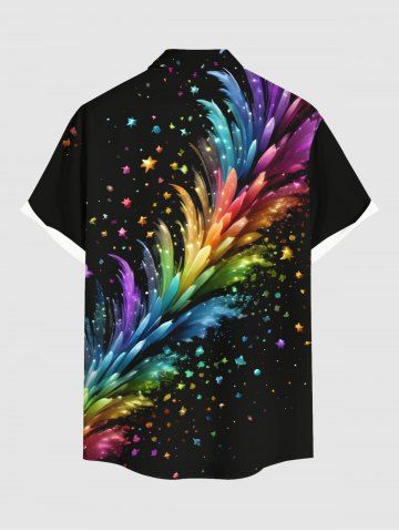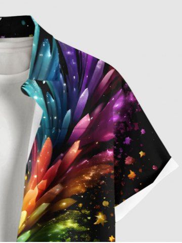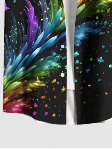 Plus Size Colorful Stars Smoke Print Hawaii Button Pocket Shirt For Men - Black - 2xl