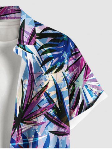 Plus Size Colorful Tropical Leaf Print Buttons Pocket Hawaii Shirt For Men - Purple - 3xl