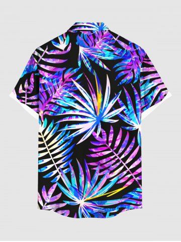 Plus Size Colorful Tropical Leaf Print Buttons Pocket Hawaii Shirt For Men - Purple - 3xl