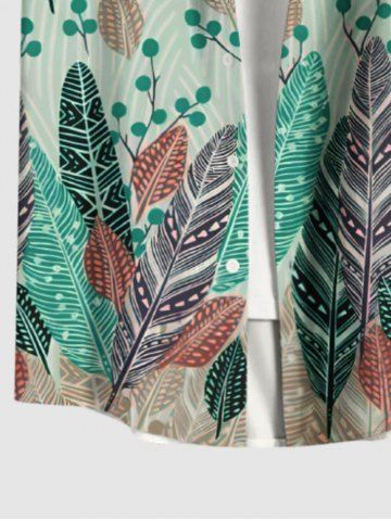 Plus Size Colorful Tropical Leaf Print Hawaii Button Pocket Shirt For Men - Light Green - 4xl
