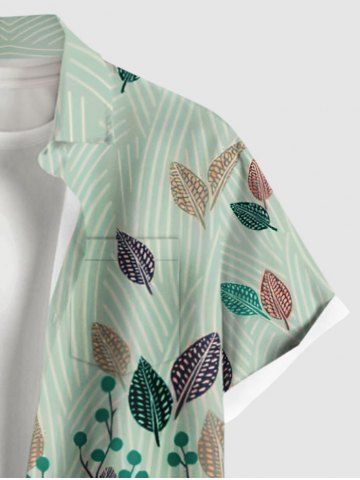 Short Sleeves Shirts > Plus Size Colorful Tropical Leaf Print Hawaii Button Pocket Shirt For Men